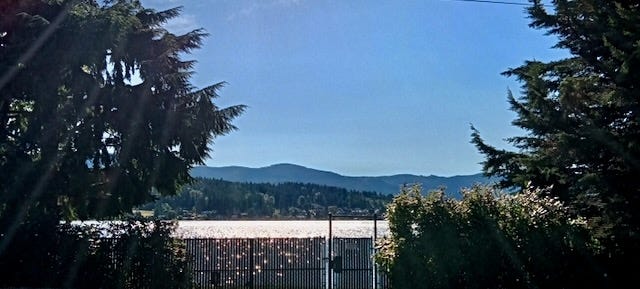 Early morning sunlight sparkling on Lake Whatcom as I waited for the city bus to arrive and take me to an occupational therapy appointment.